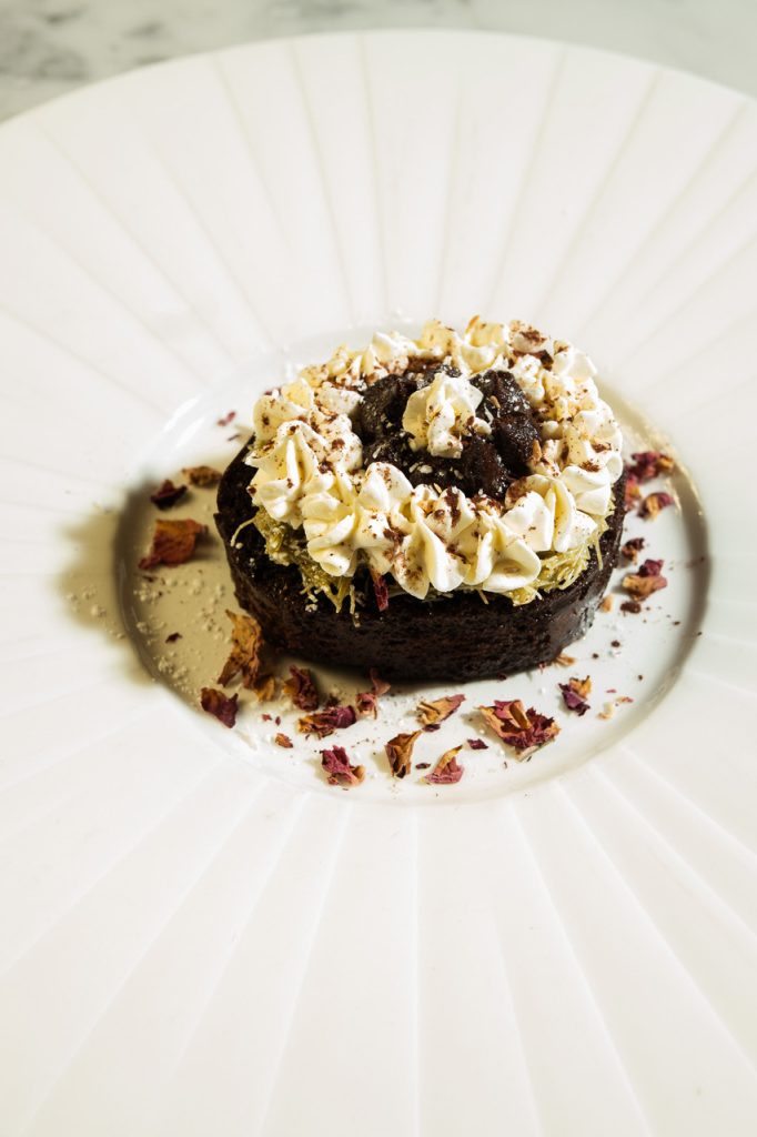 HOMEMADE PISTACHIO CREAM, CHOCOLATE GANACHE, CRISPY KUNAFA