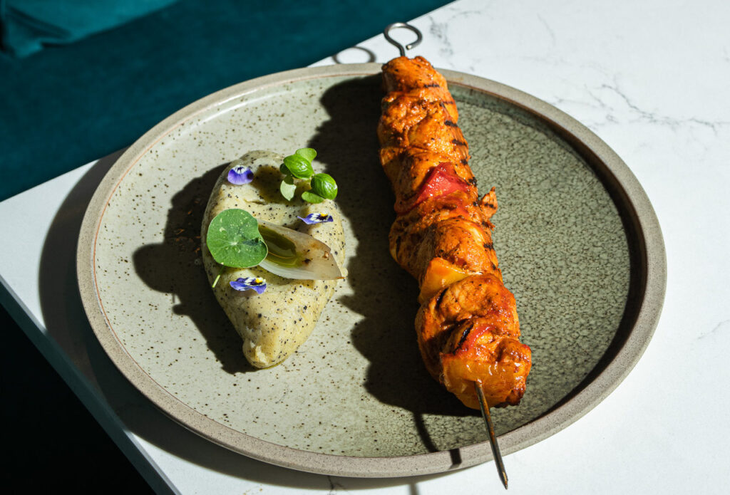 MARINATED CHICKEN TENDERS SERVED WITH TRUFFLED POTATO MASH